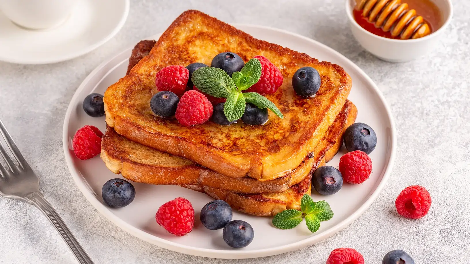 To make, whisk together an egg, a splash of milk, a teaspoon of sugar, and a pinch of cinnamon (as well as vanilla extract if you have some!) in a shallow dish. Dip two slices of bread into the mixture, coating both sides. Heat a little butter in a frying pan, then cook the bread until golden brown on each side. Serve your French Toast with a drizzle of honey, syrup, or a handful of fresh fruit if you have some on hand. Tip: Instead of fresh fruit, which can be pricey, use frozen berries. These are more economical and just as tasty when defrosted.